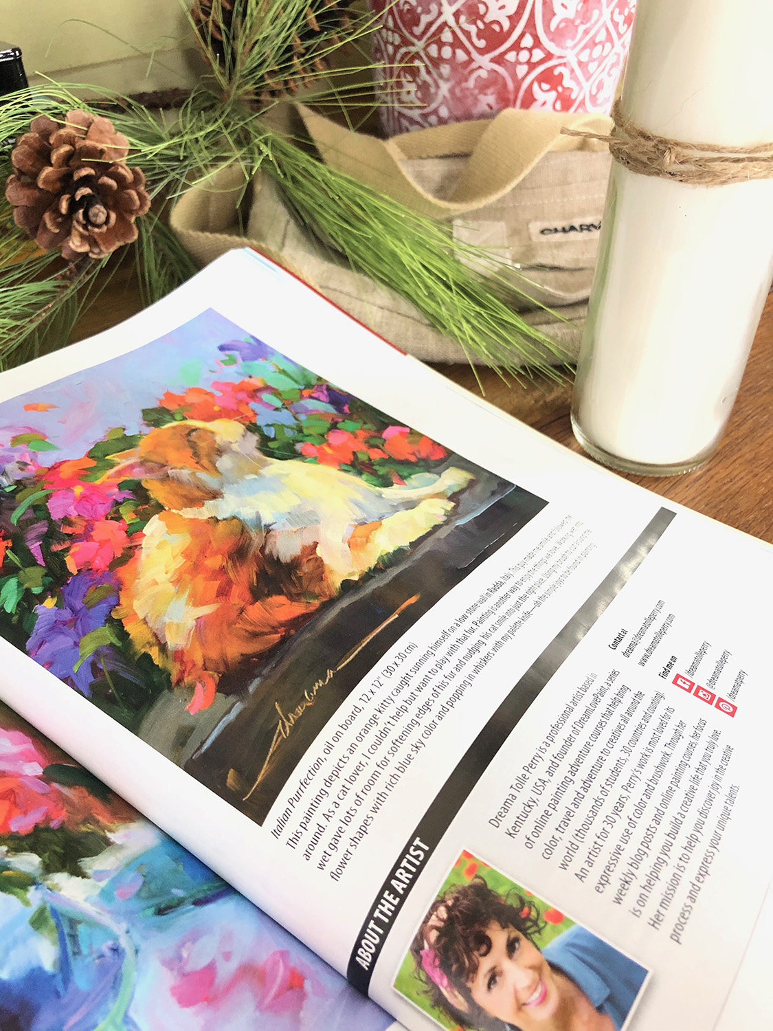 Well, art magazines are even more gorgeous these days, and somehow I've managed to get myself and my paintings in one of the best—the International Artist Magazine. They contacted me a few months back, and here we are, spread out in the December/January issue.
